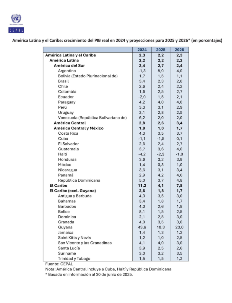 Mientras que la CEPAL estima que América Latina y el Caribe enfrentarán un periodo de bajo crecimiento (con promedios de 2.4% para 2025 y 2.3% para 2026), las proyecciones para Honduras son notablemente más optimistas.