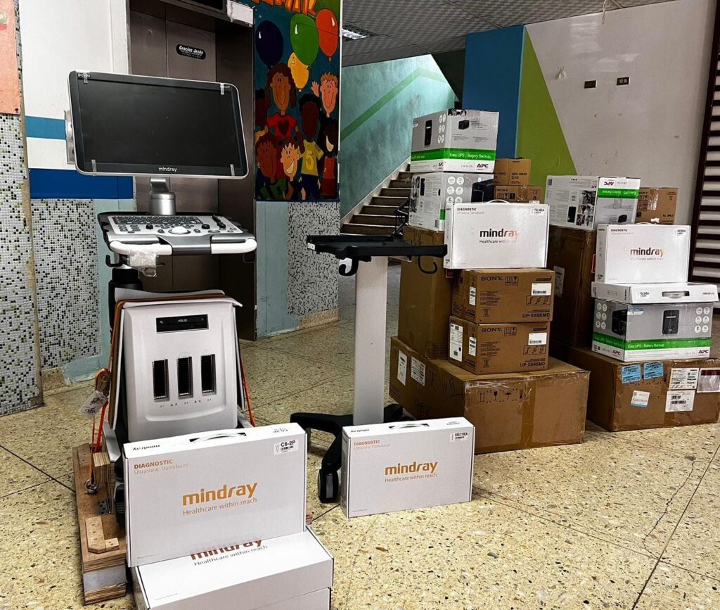 La subsecretaria de Proyectos e Inversiones, Suani Montalván, informó que la donación está valorada en un millón de lempiras e incluye tres ultrasonidos portátiles destinados a emergencias de adultos, pediatría y la Unidad de Cuidados Intensivos, además de un ultrasonido digital tipo torre para el área de ginecología.